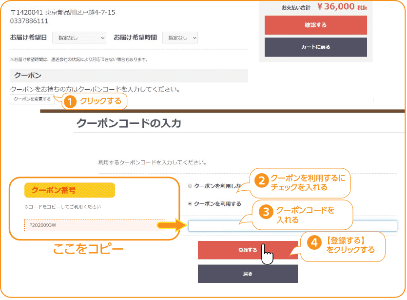 クーポンをご利用いただくとオンラインショップでのお買い物、税抜30,000円以上で2%OFFとなります。