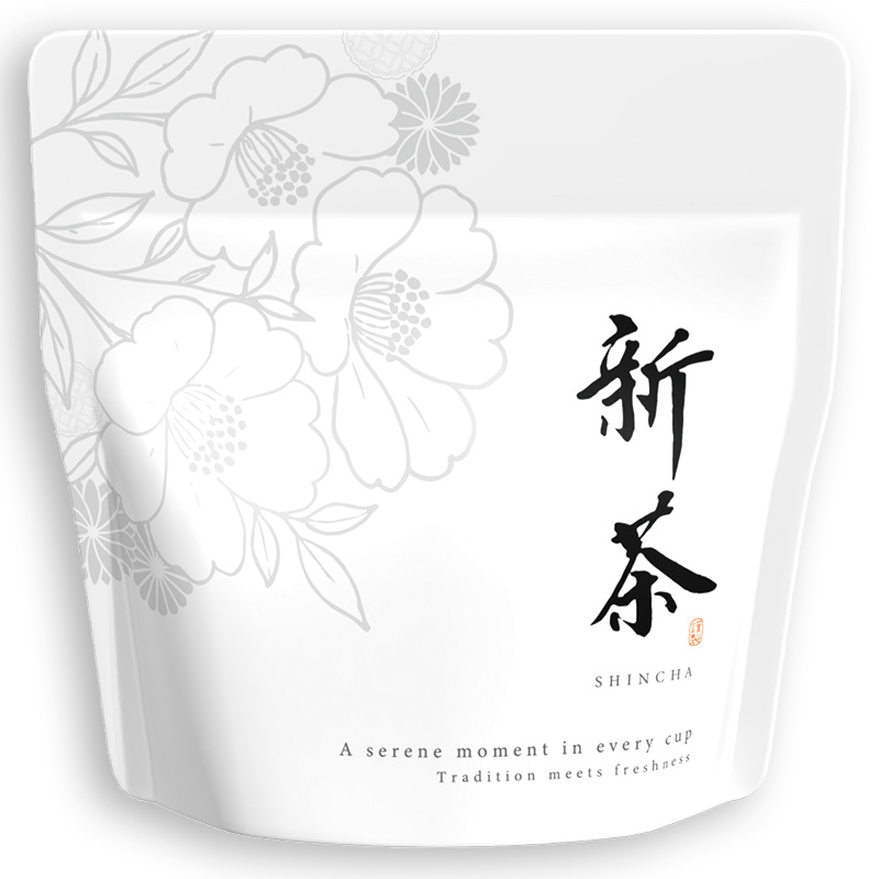10697 26新茶 マットアルミチャック付スタンド袋(白)
