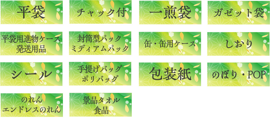 定番平袋に加え、チャック袋や一煎袋など、用途によって使い分けていただけるパッケージをご用意しております!
